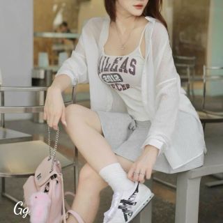 Set áo 2 dây + chân váy xám kèm sơ mi sọc freesize
