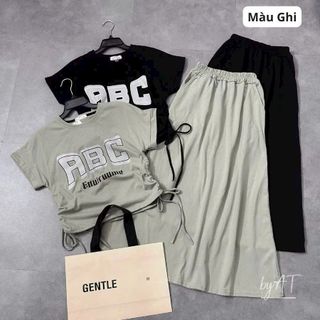 Set Áo Dây Rút Chữ ABC Mix Chân Váy Xuông, Tôn Dáng Màu Ghi Và Đen Mặc Đi Chơi, Ở Nhà freesize dươi 55kg