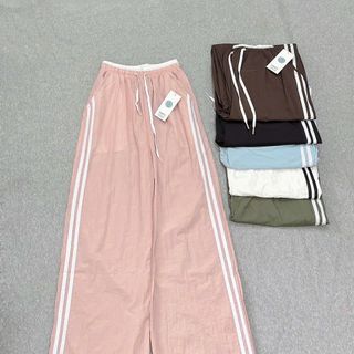 Quần Ống Rộng Dây Rút Chất Dù Nhăn Phối Màu Và Sọc Freesize Dưới 65kg