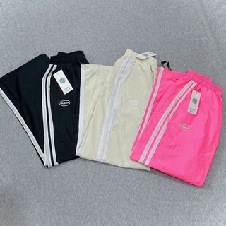 Quần Ống Rộng Dây Rút Chất Dù Nhăn Phối Sọc In Chữ Phía Trước Cá Tính Freesize Dưới 65kg