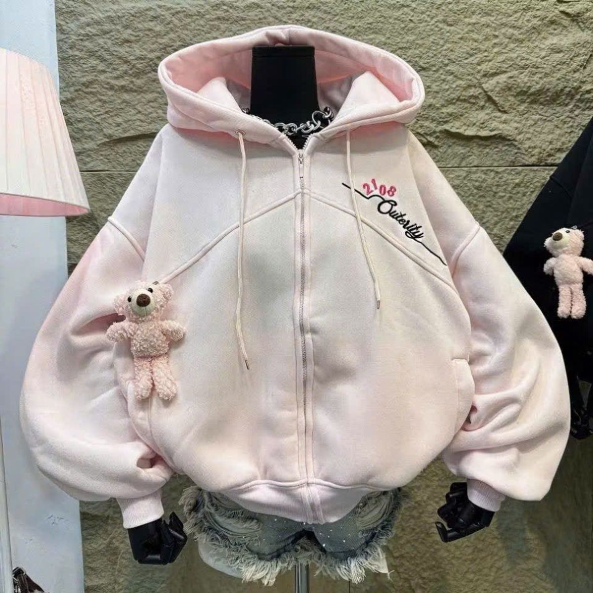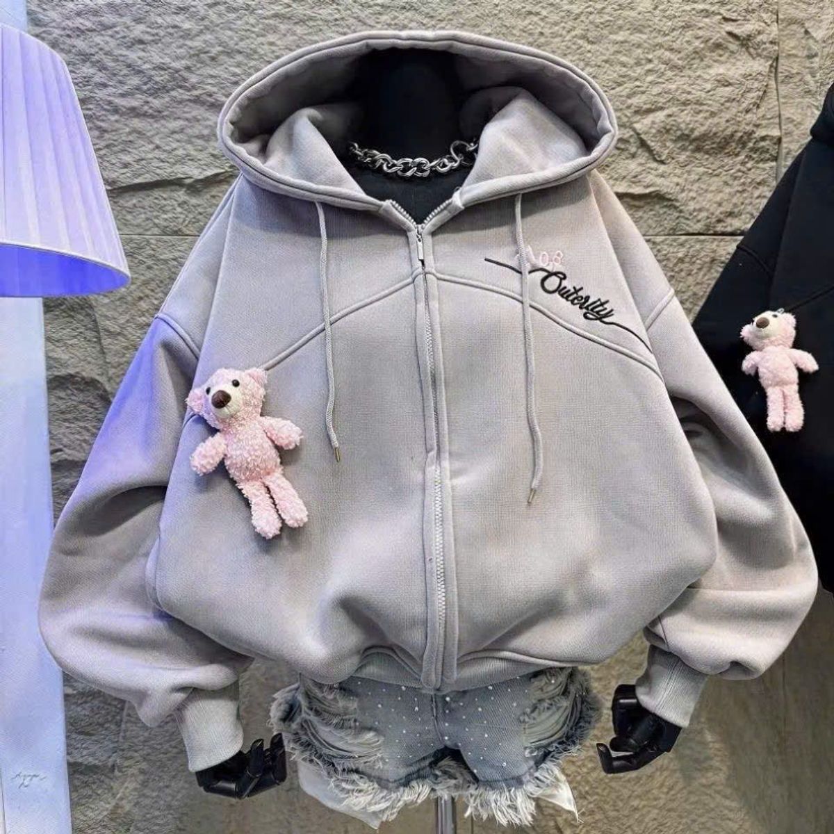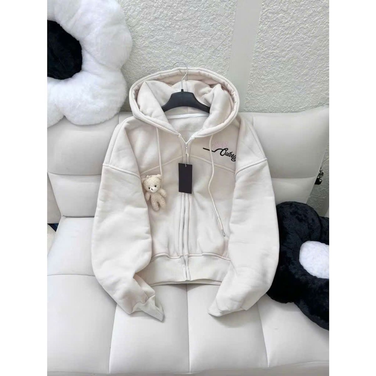 Hãy sở hữu ngay áo khoác nỉ nữ dây kéo phao, logo thêu kèm charm – món đồ lý tưởng cho mùa đông này!