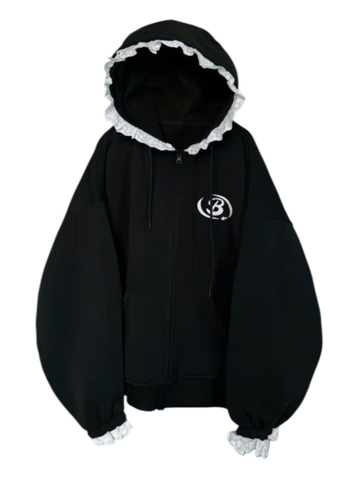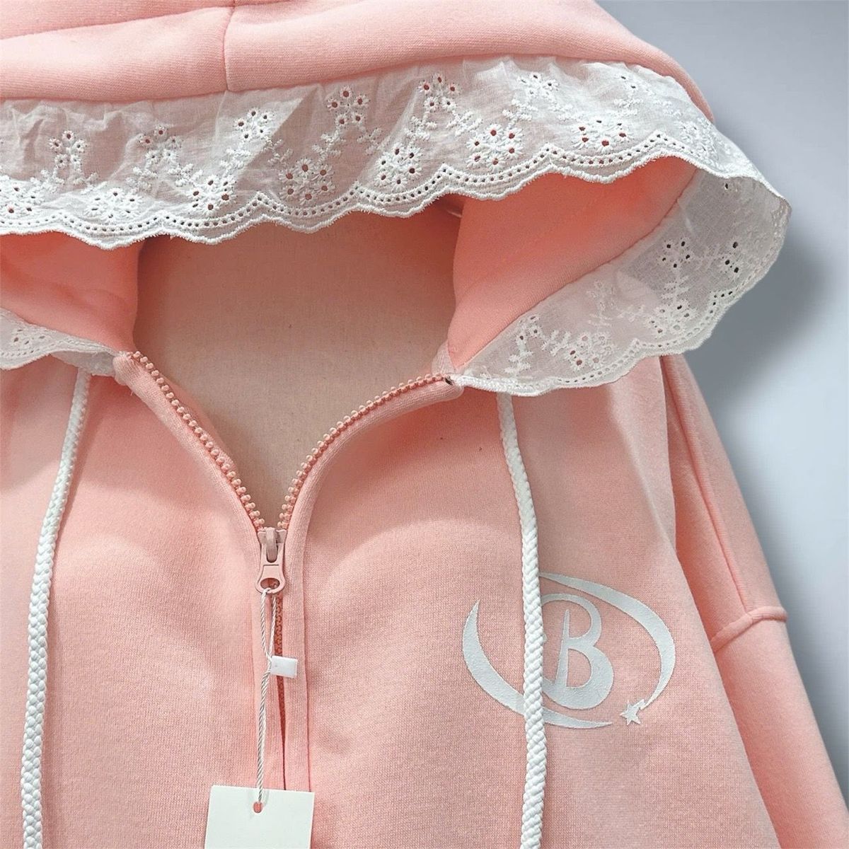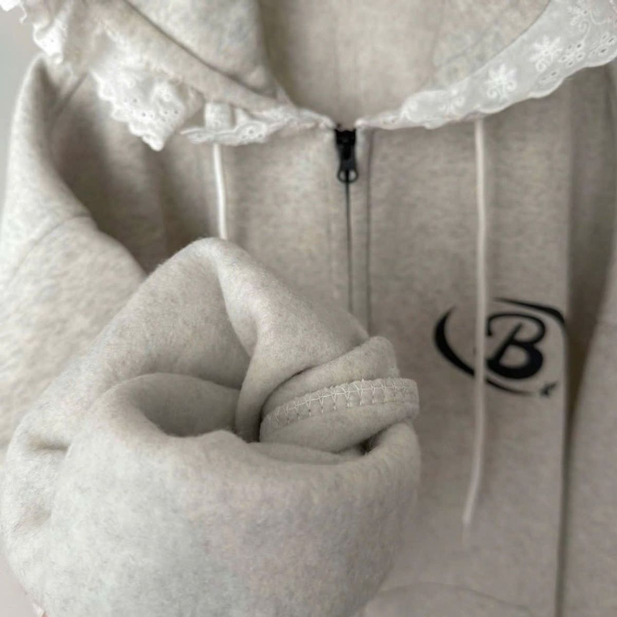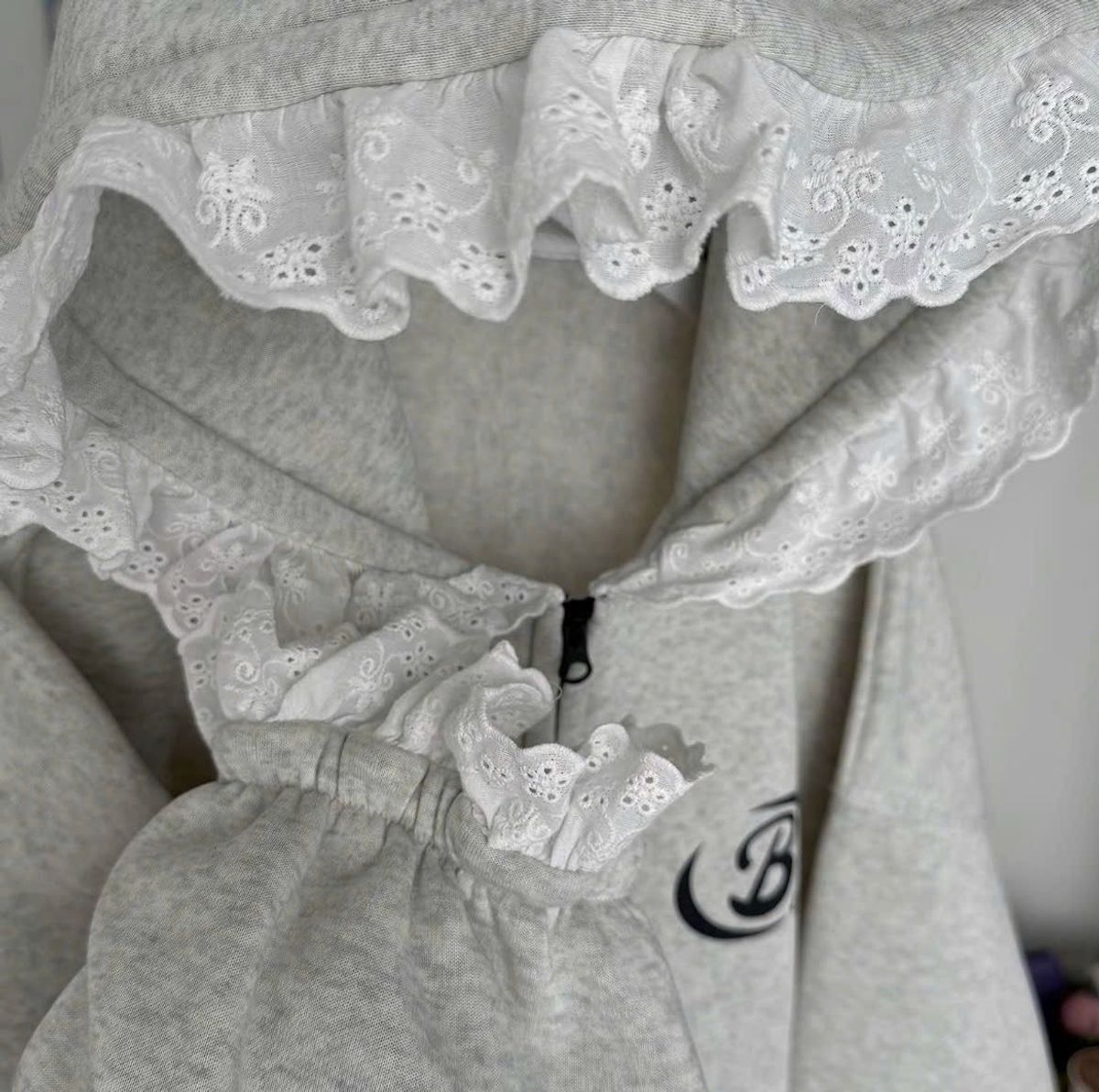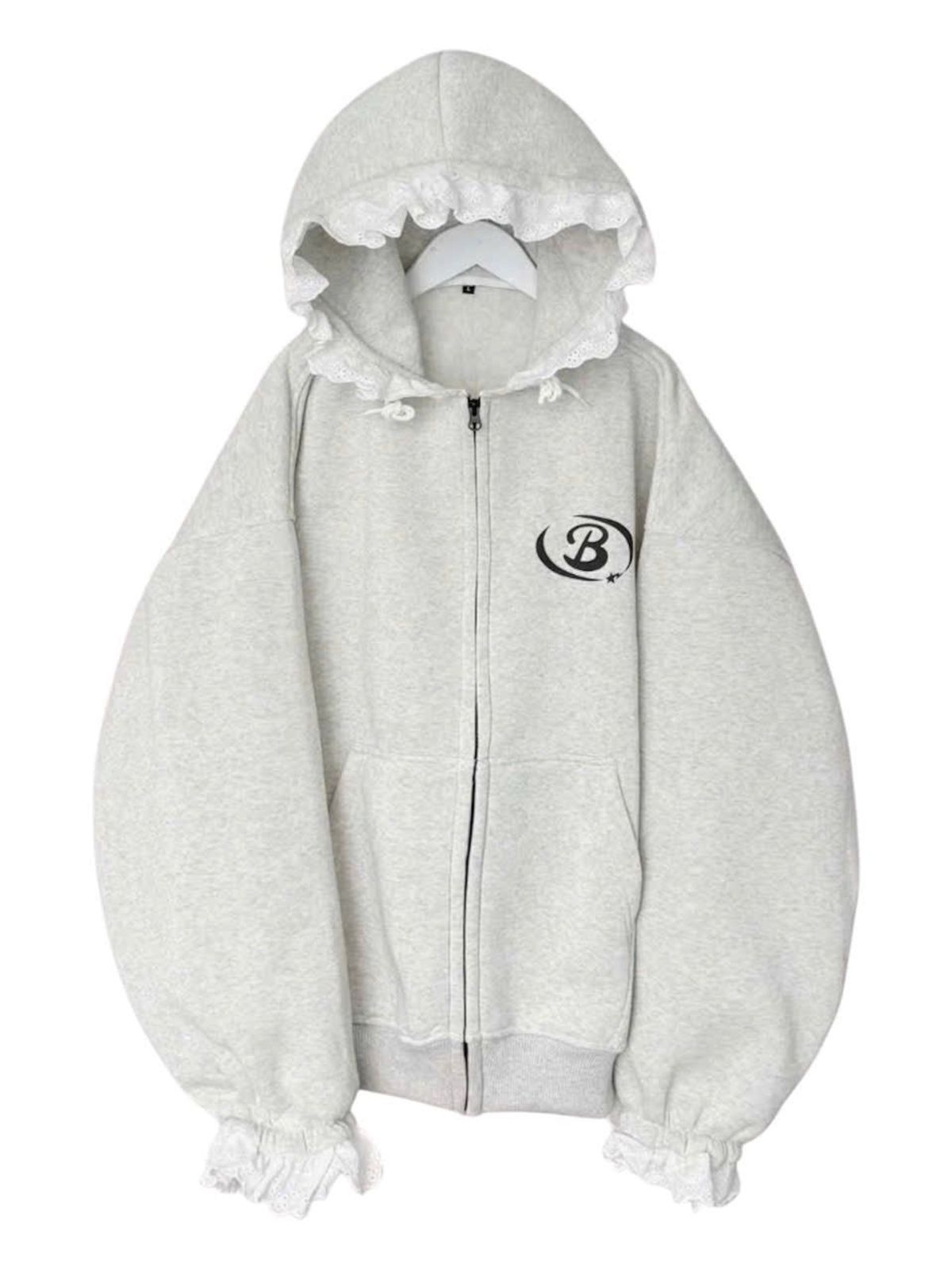 Áo khoác nữ chất nỉ bông mũ phối ren