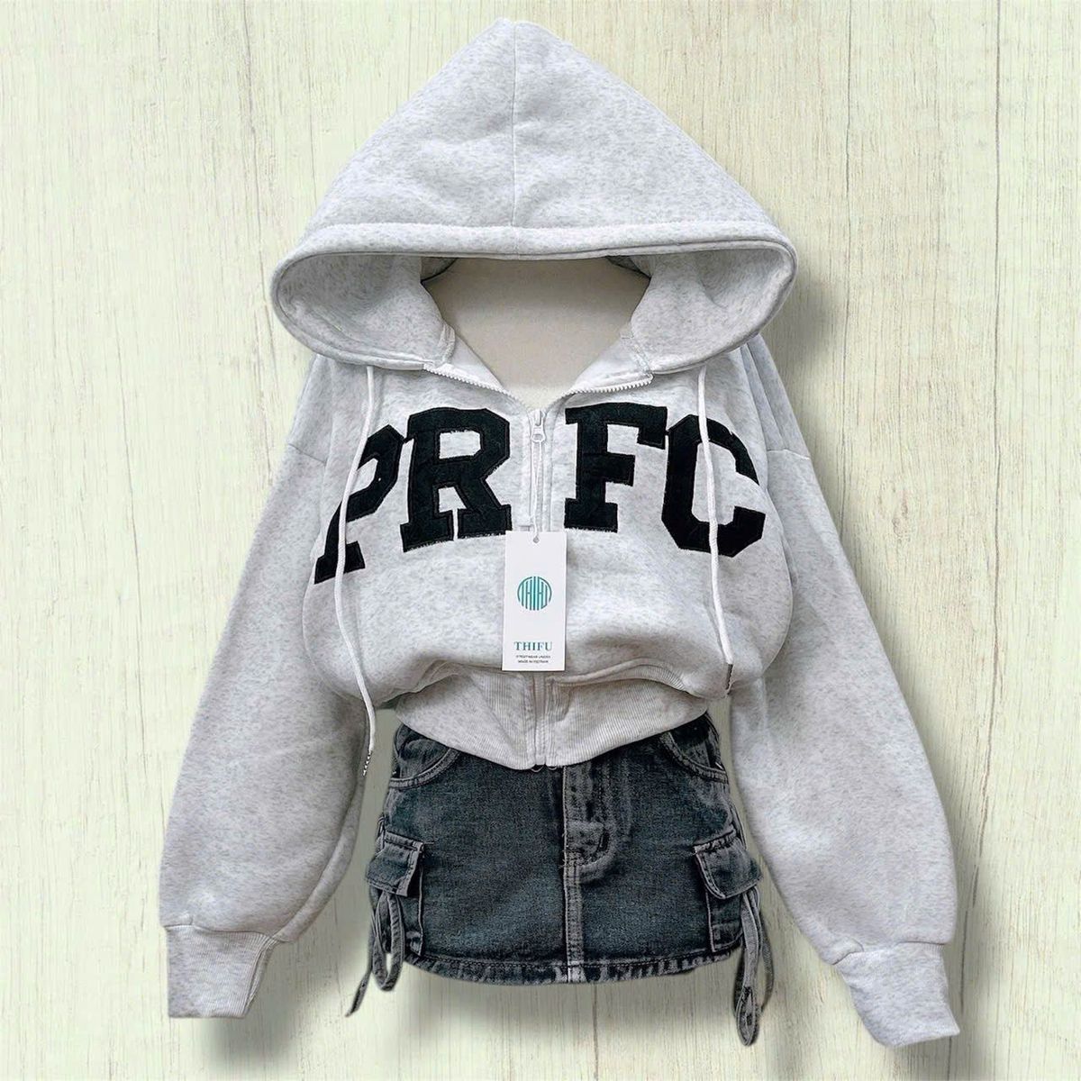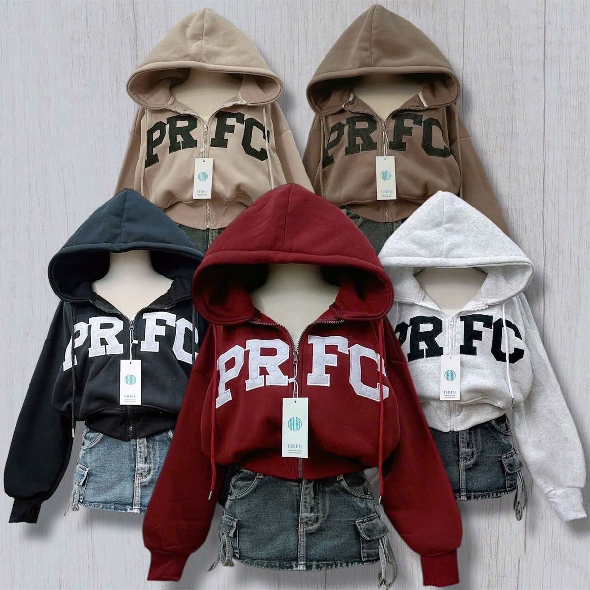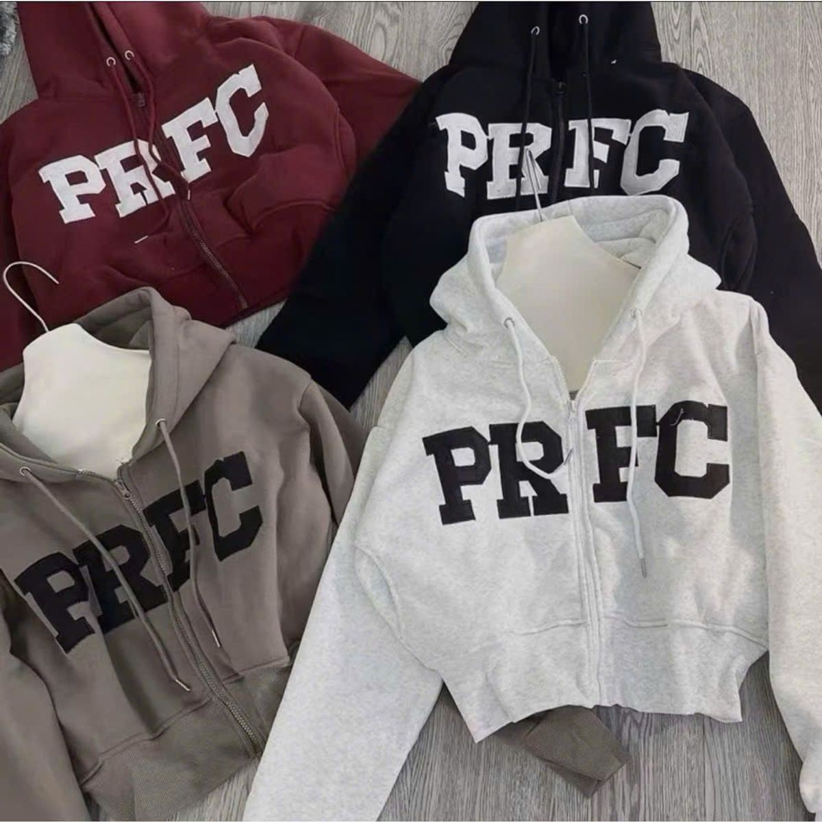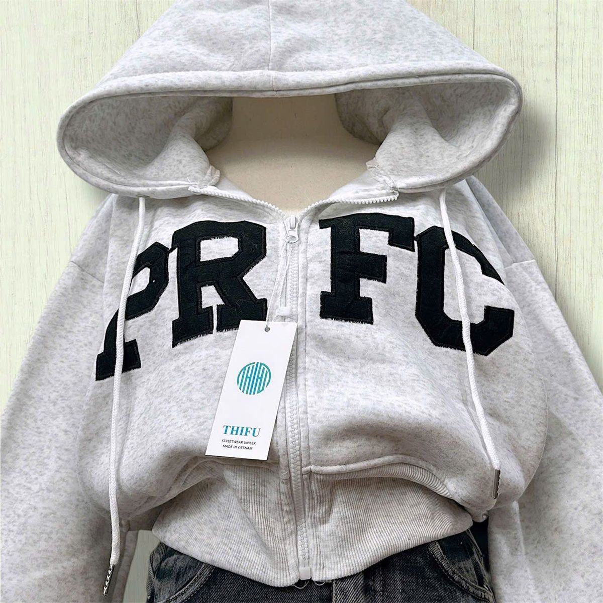 Áo khoác nữ lửng PRFC vải nỉ dày mịn nón rộng