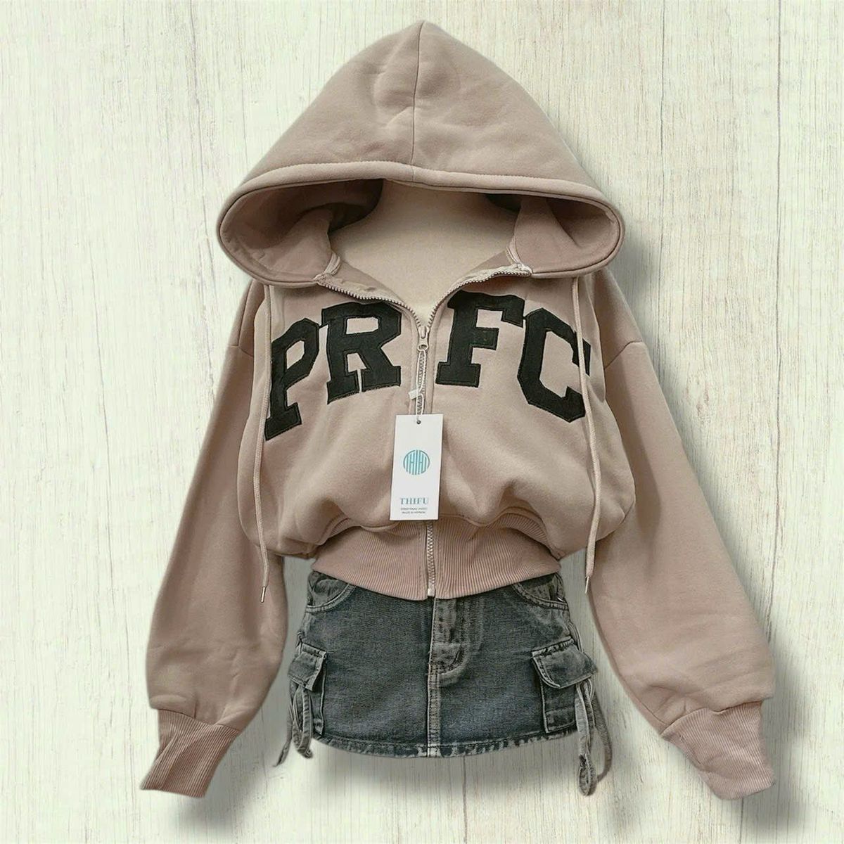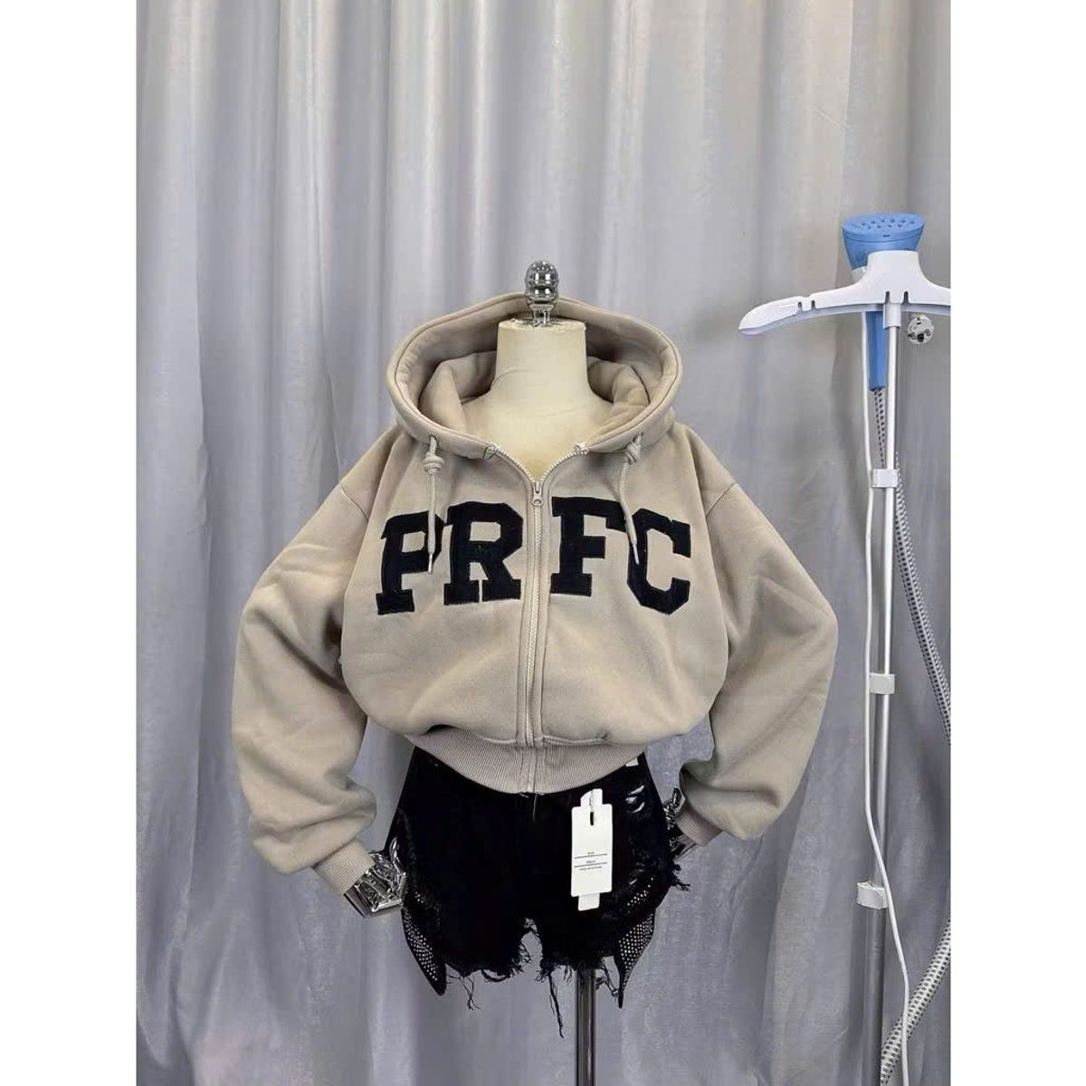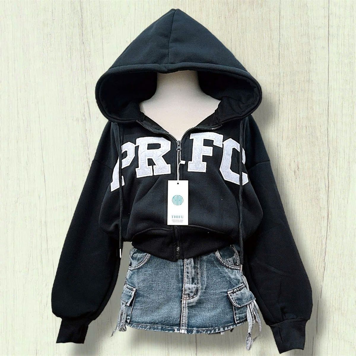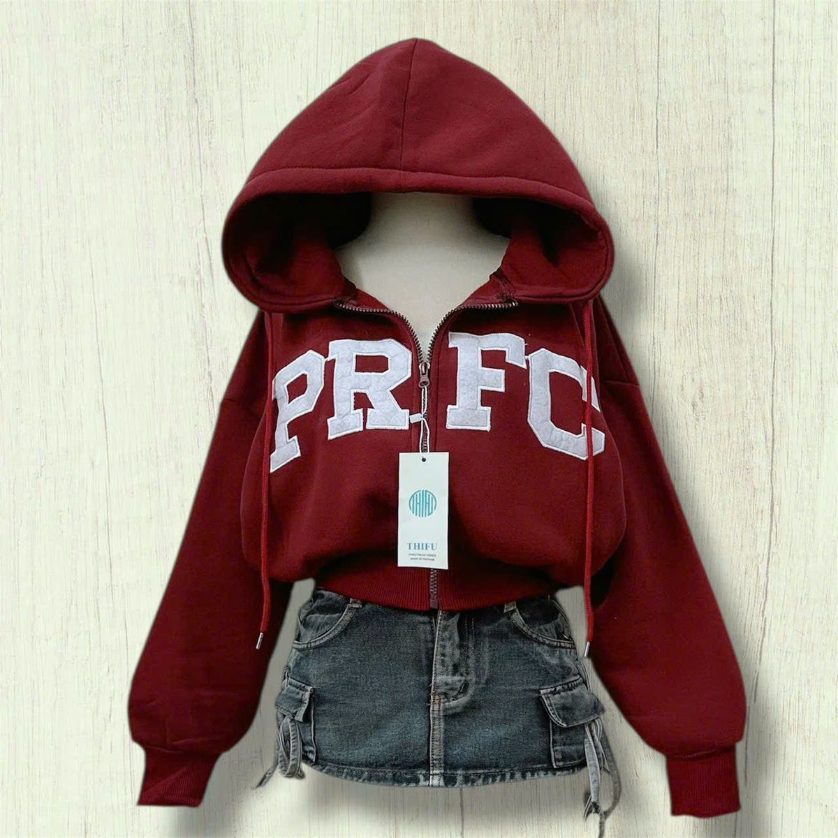Áo khoác nữ lửng PRFC vải nỉ dày mịn nón rộng