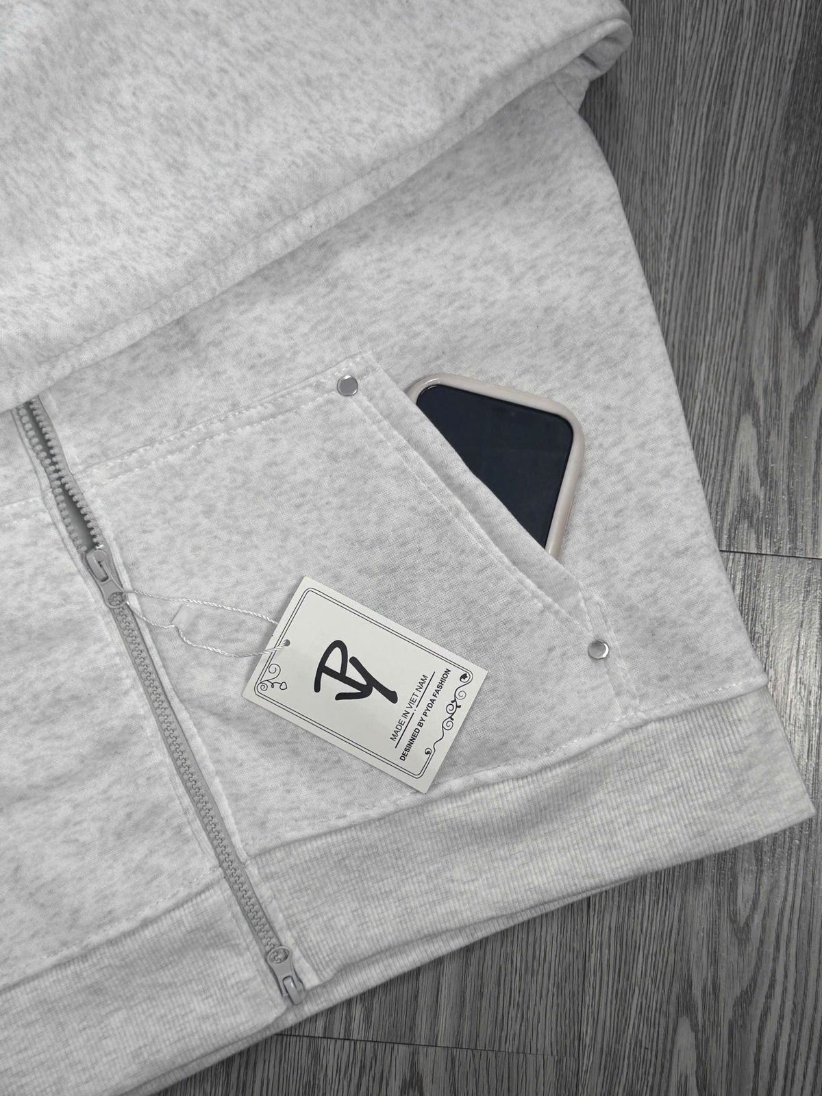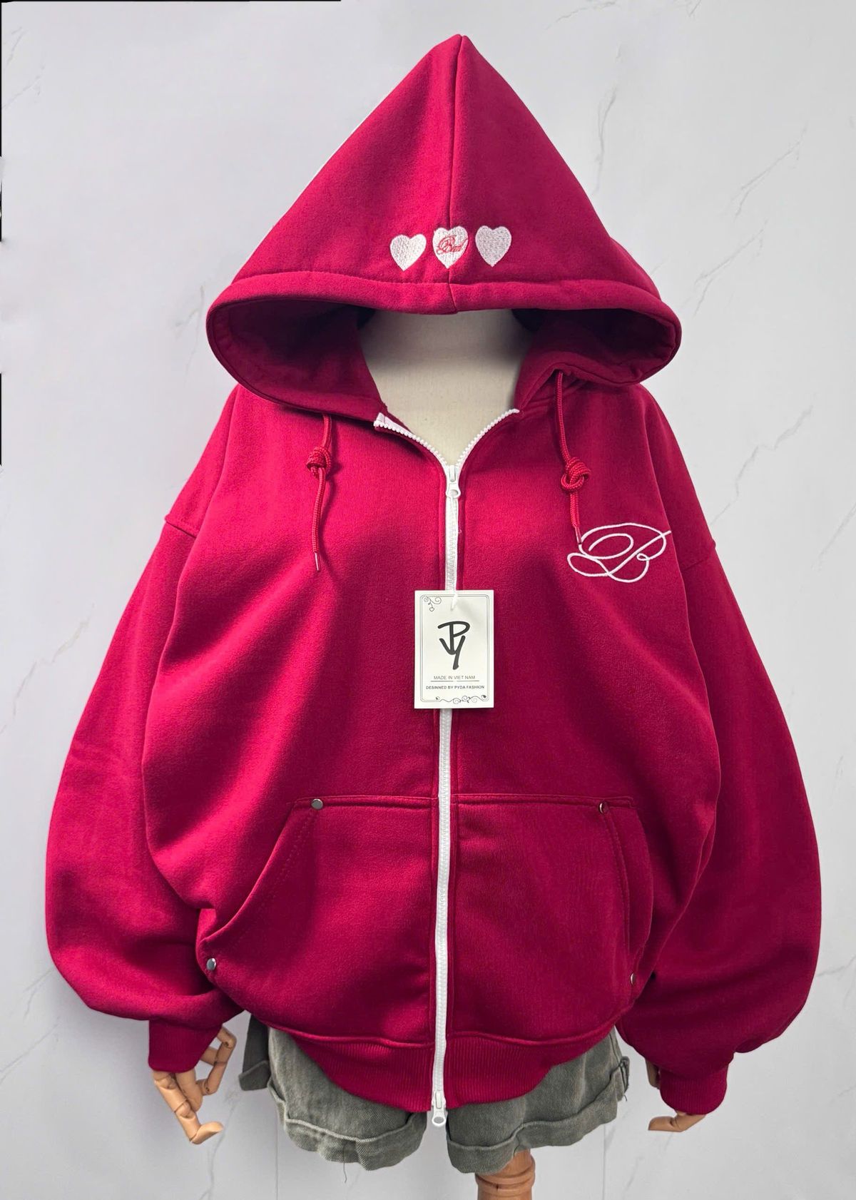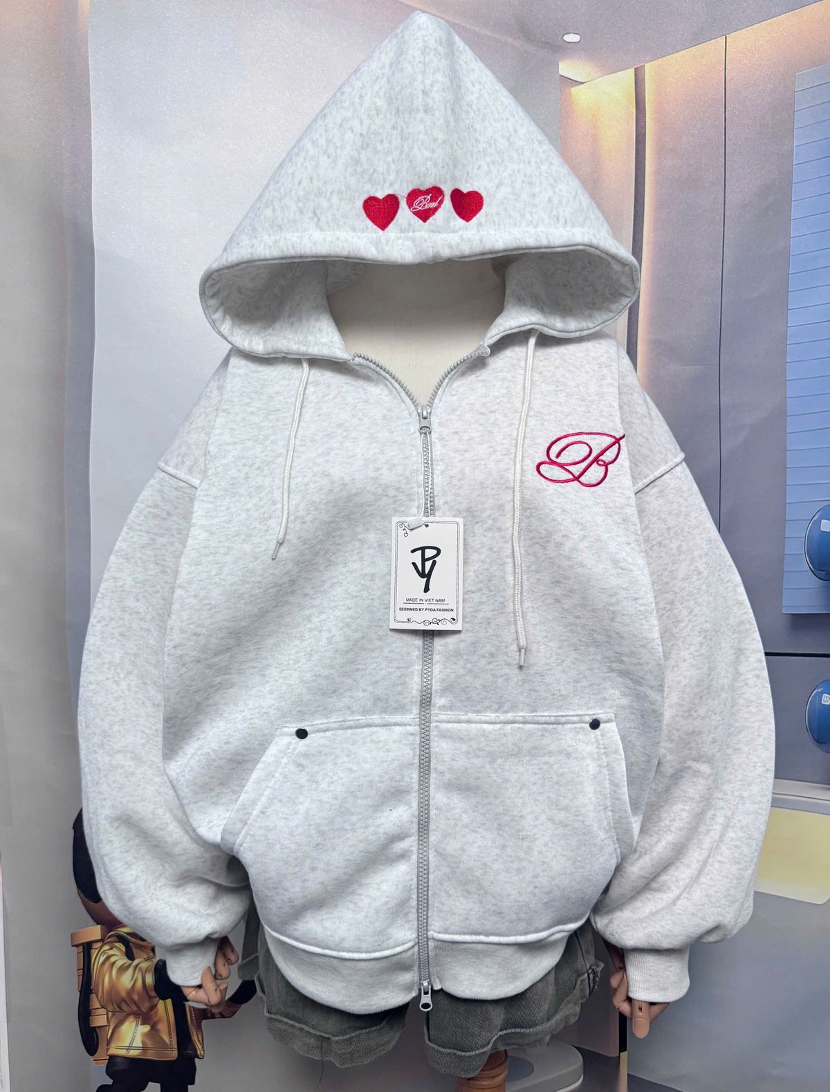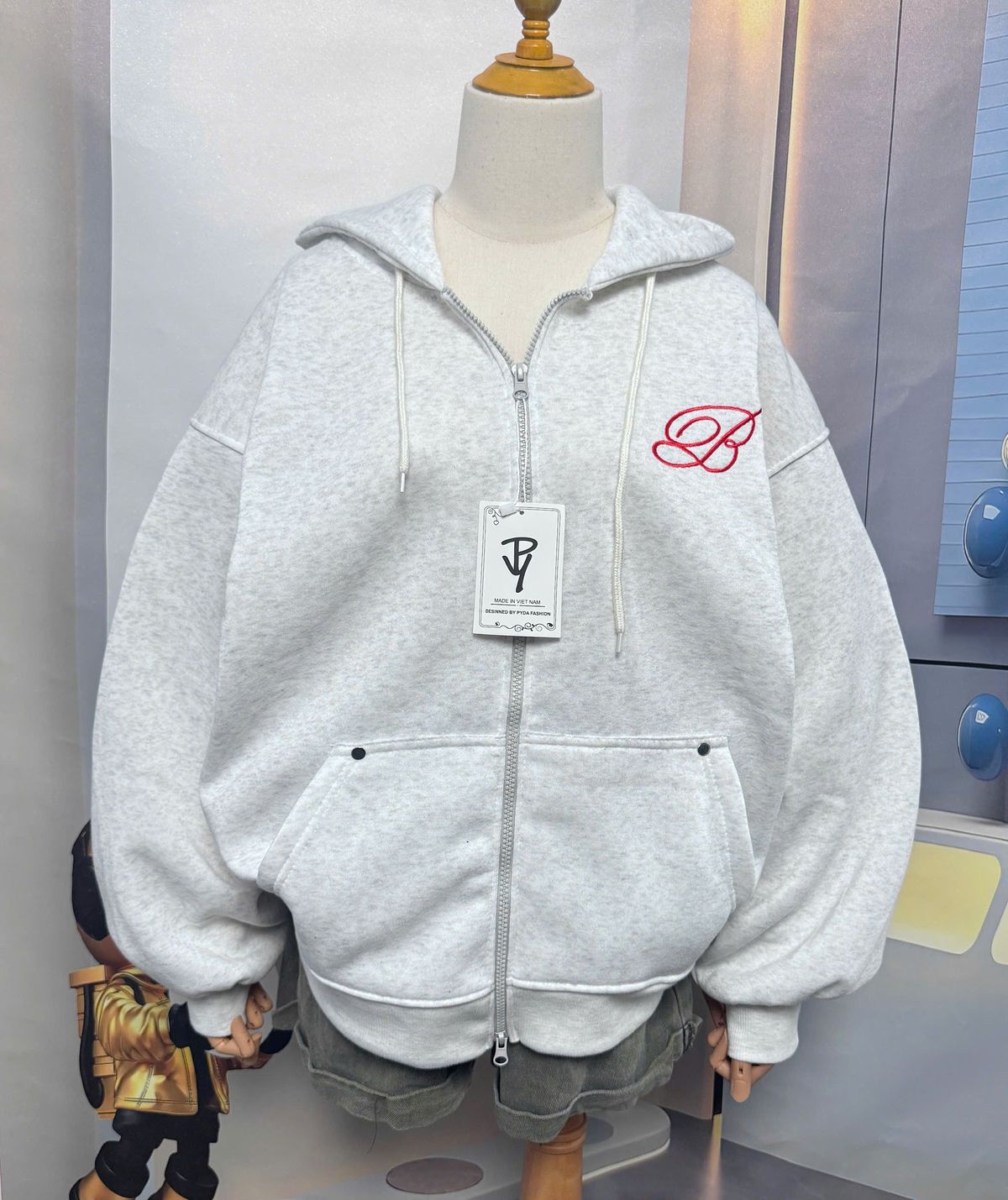 chất thun nỉ dày mịn,nón rộng 2 lớp vải chính ,logo thêu ,dây kéo phao 2 đầu.tay phồng rộng, bo dệt.form dài .có túi trong.nút đinh ở túi