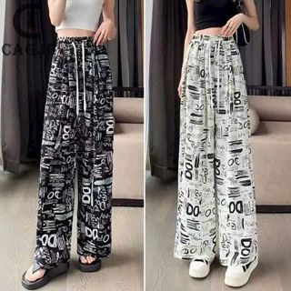 Quần Ống Rộng Chất Dù Nhăn Dây Rút Lai Phối Sọc Đen Xám Freesize Dưới 65kg – Thời Trang Thoải Mái và Đẳng Cấp