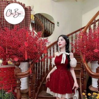 Váy Tuyết Mưa Sát Nách Cổ V Kiểu, Đầm Suông Viền Bèo Dáng Ngắn Thời Trang