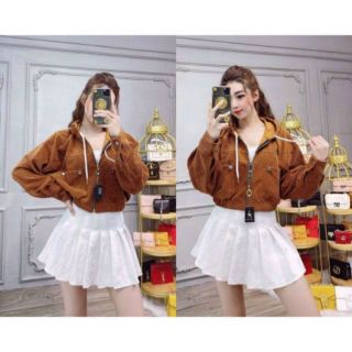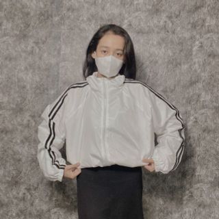 Áo khoác dù 2 lớp tay 2 sọc thể thao dáng lửng có dây rút phong cách